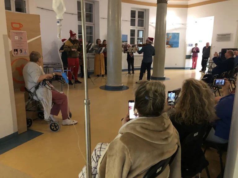 Podobny koncert odbył się kilka lat temu także w Hospicjum Palium, a jego inicjatorem i prowadzącym jest p. Miron Stieler. Pod jego przewodnictwem dla naszych Pacjentów wystąpiła Miła Orkiestra Smyczkowych Transformacji, czyli niezwykły projekt powstały z miłości do muzyki.
